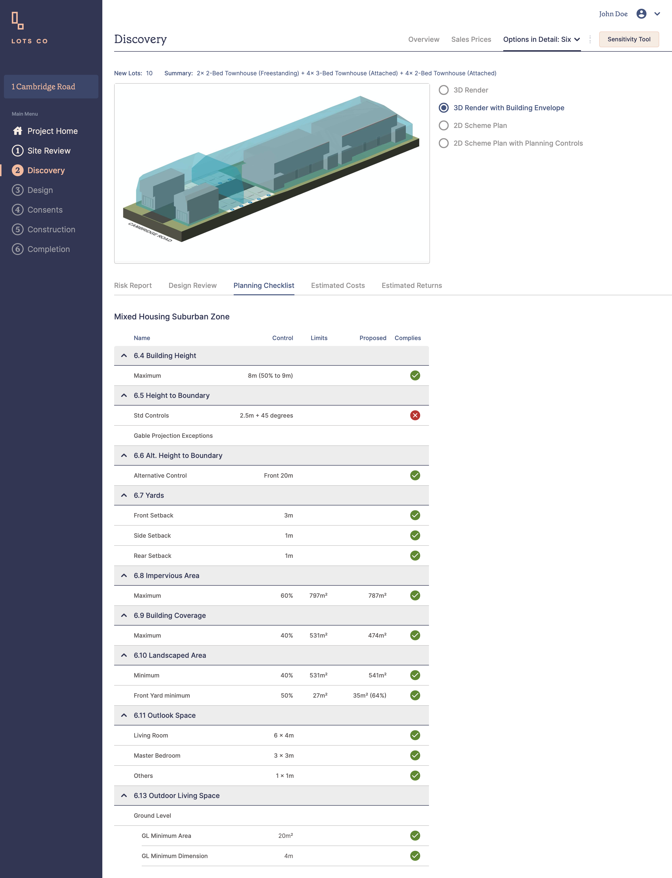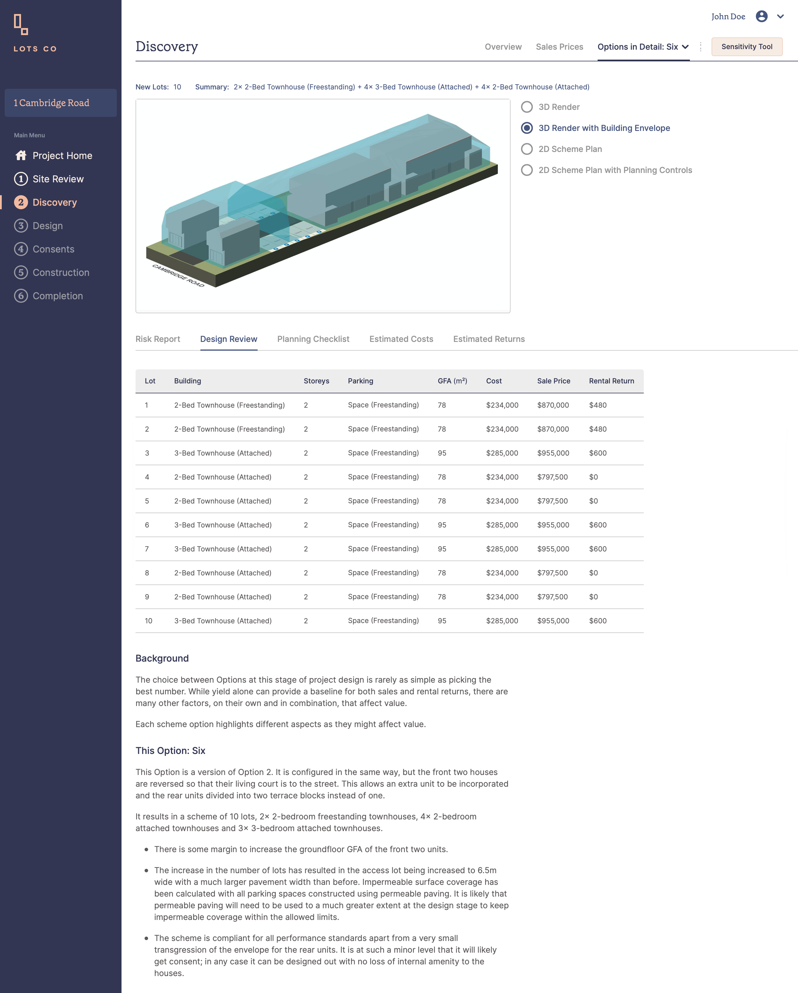 This is the most important step in the process. Once we have the brief for development we design 4–6 development options for you with real house designs. These options include comprehensive feasibilities. To achieve this detail we use our Lots Co Smart Houses and our neat Lots Co Smart Cost Technology.