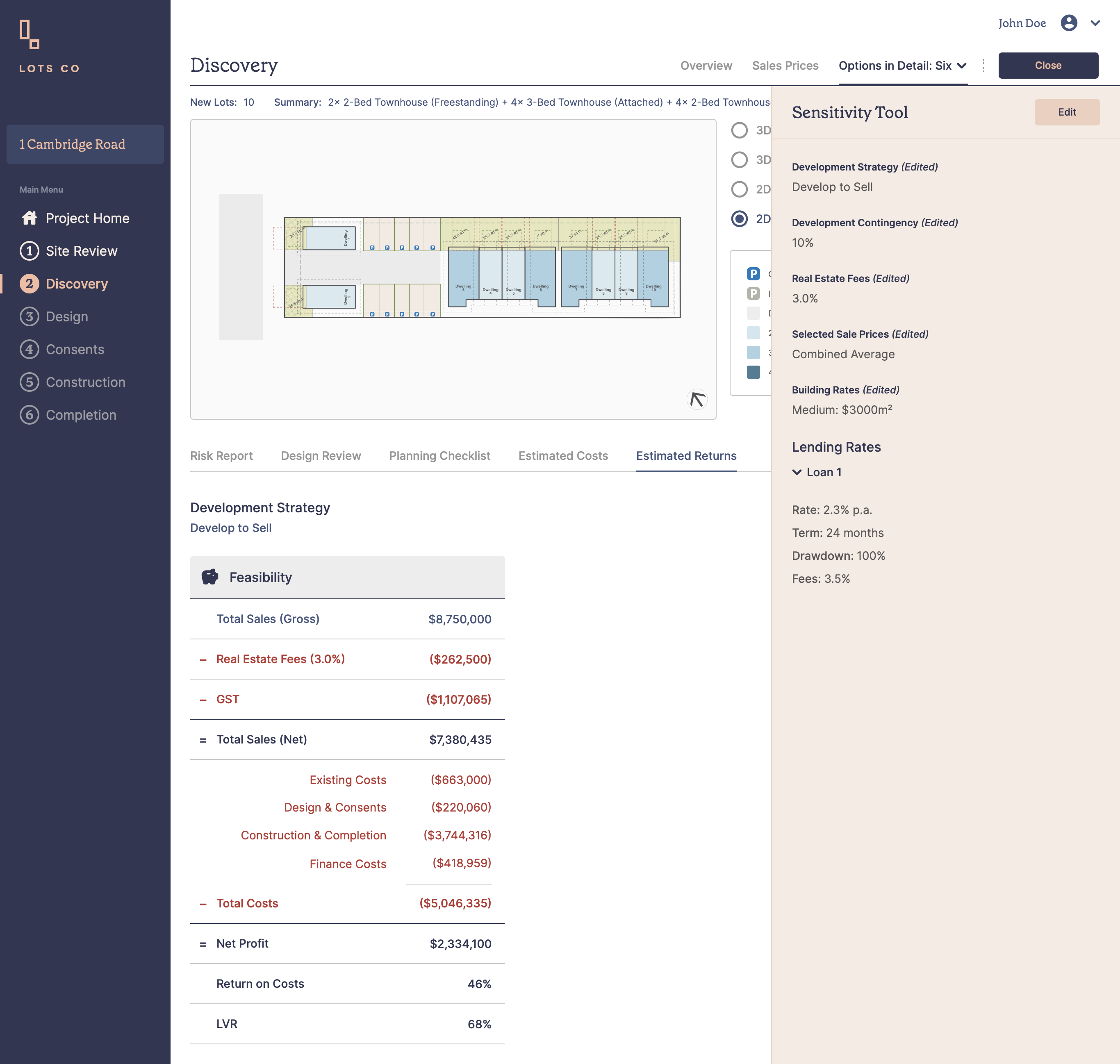 The Smart Houses are linked to our Smart Cost Technology to generate detailed development costs. This process allows you to weigh the risks and merits of real development scenarios, so you can make the best business decision for your development and future.